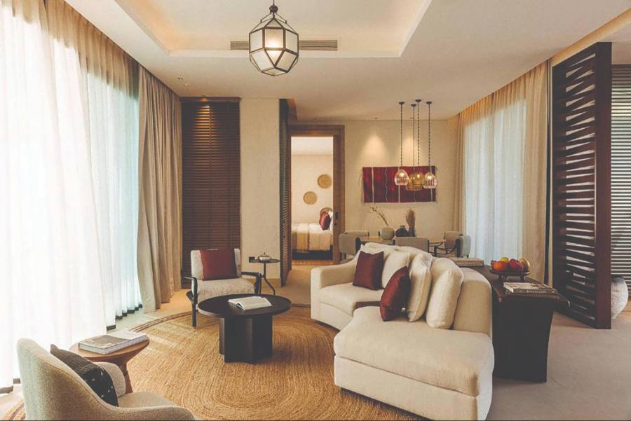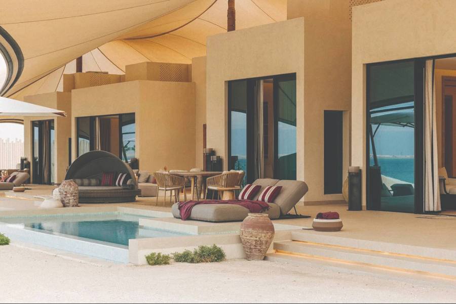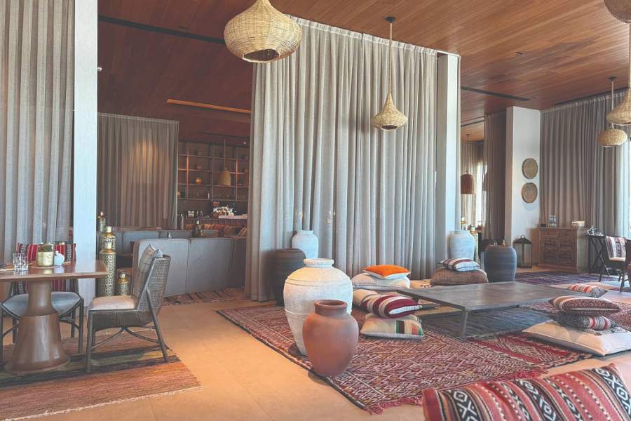 Days at La Pause unfold slowly, guided by mood rather than schedule. Some guests spend hours reading in the shade of olive trees, drifting between hammocks or relaxing beside the pools that overlook the desert landscape. Others choose to explore the surrounding terrain, beginning with early morning walks that capture the desert at its most peaceful, as the rising sun casts long shadows across the hills before the heat settles in.