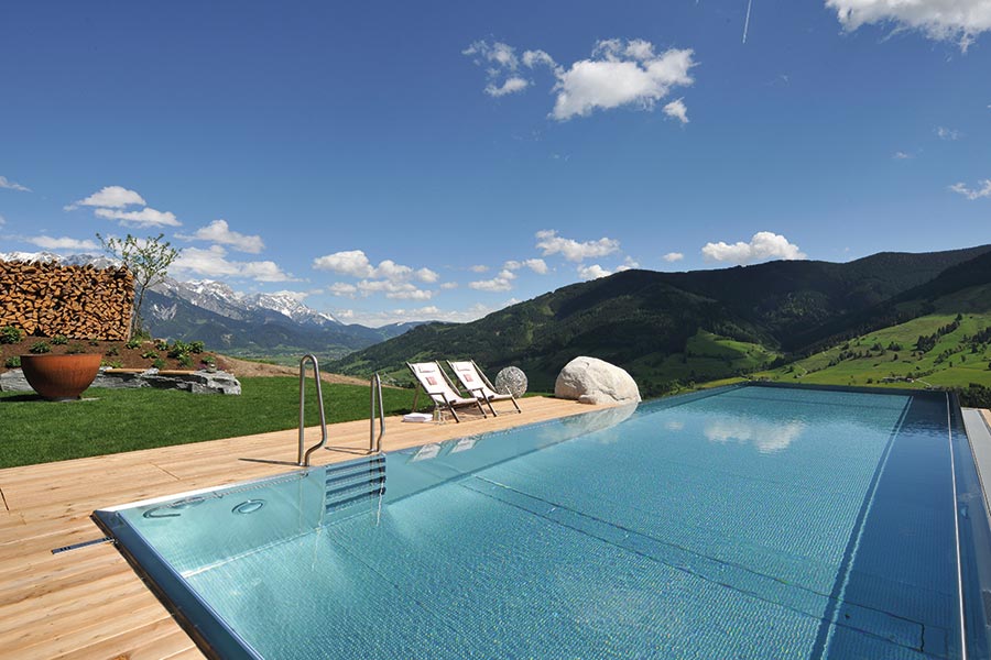 PRIESTEREGG Premium ECO Resort is nestled in the scenic Leogang Mountains, only a stone’s throw away from the city of Salzburg. The resort is a haven for peace and privacy, where guests can completely unwind in the surrounding alpine landscapes.
